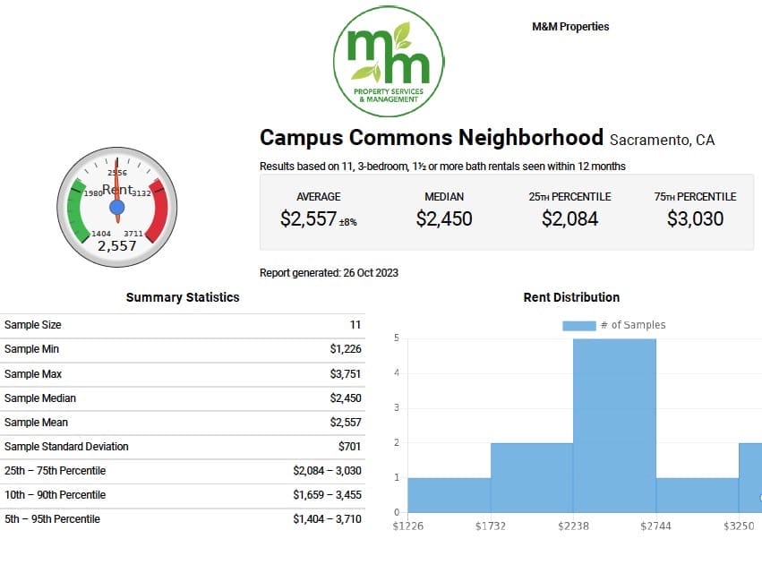 When it comes to finding a place to rent, understanding the average prices and the distribution can provide potential renters with a clearer idea of what to expect. Let’s dive into some of the recent statistics on 1 to 3-bedroom rentals in the Campus Commons Neighborhood of Sacramento, CA, based on data from M&M Properties.